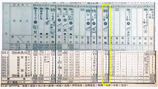 1974年3月 北越号による新潟までの所要時間で2015年 北陸新幹線で東京まで行けてしまう。